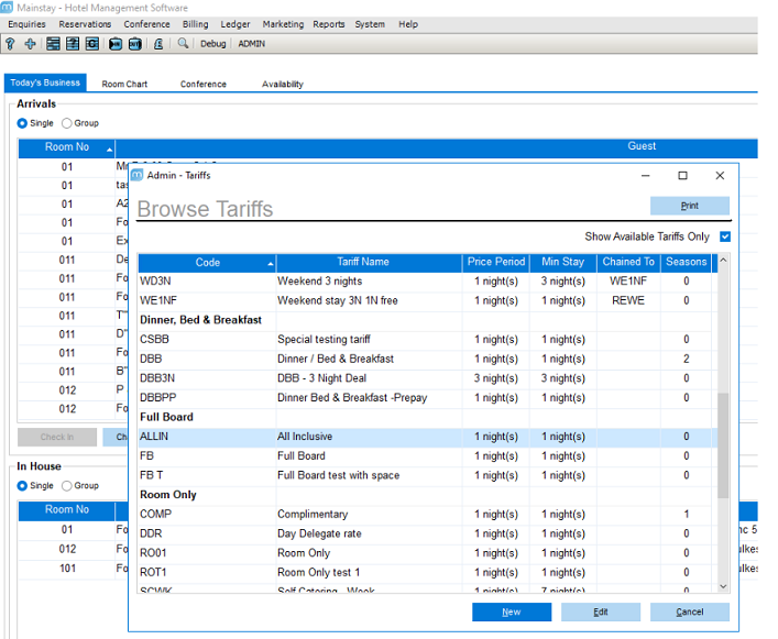 We have added a new option to the Tariff setup for tariffs that cover multiple nights. e.g. a 3 night weekend special. You can now choose to have the entire stay billed on the first night as a single charge.